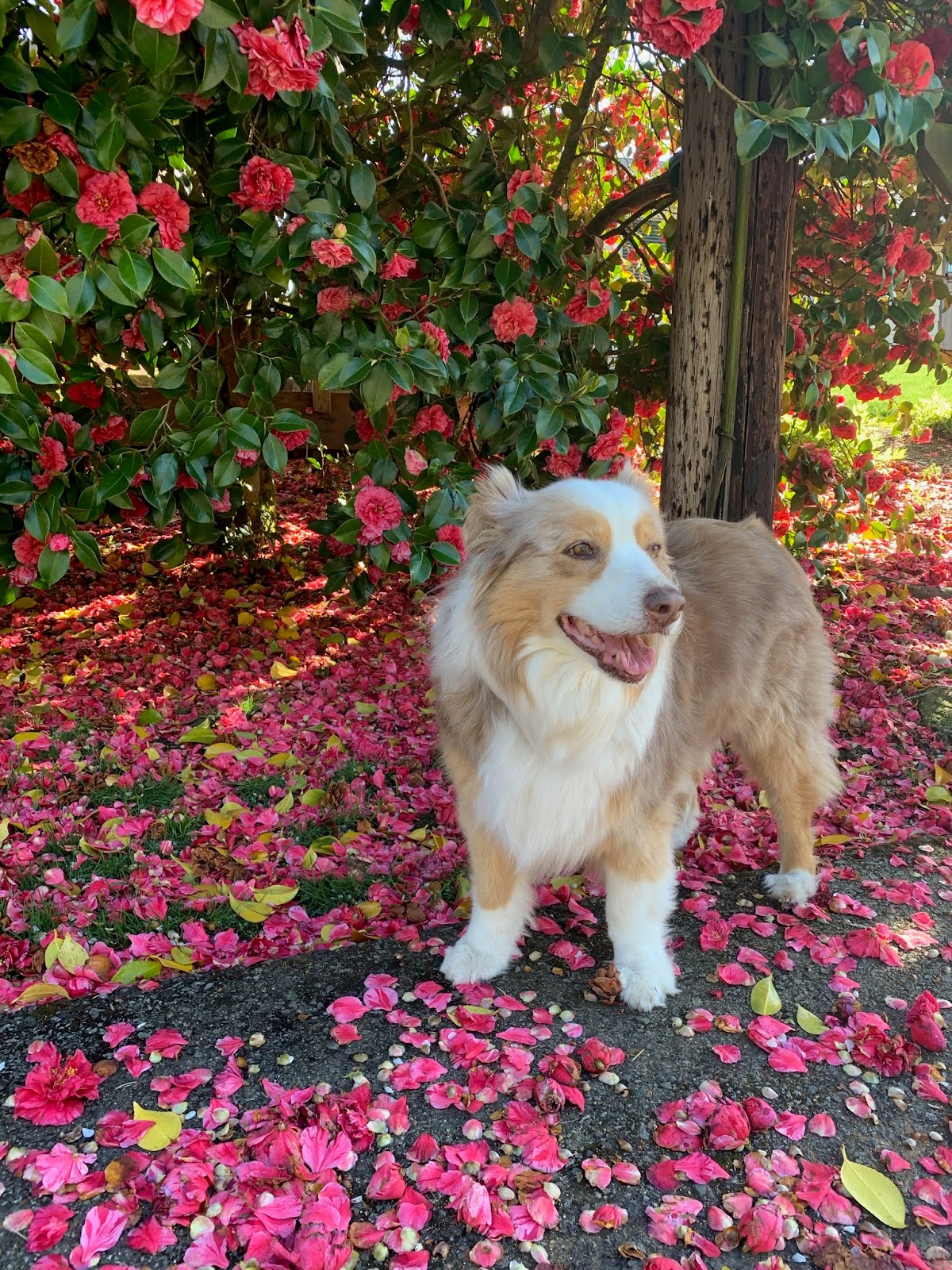 Roxy, my Australian Shepherd, enjoying a walk on a spring evening in April, 2020.
